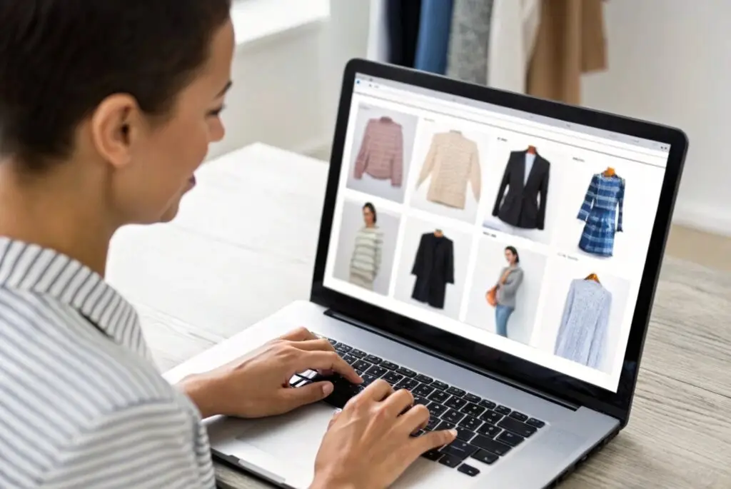 Business professional reviewing clothing collection online