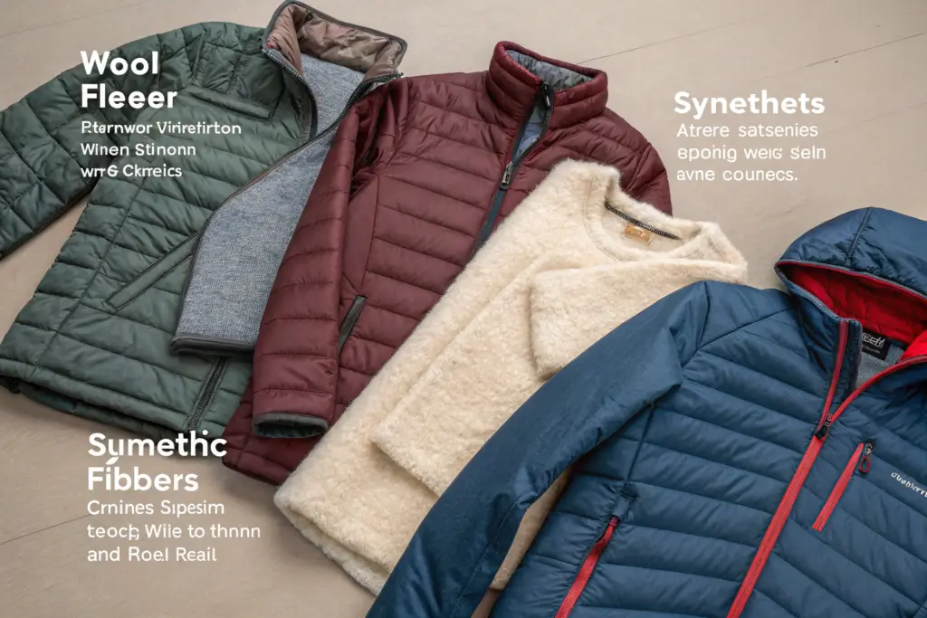 Synthetic insulations offer advantages that natural fibers cannot match. They maintain warmth when wet, dry quickly, and provide excellent warmth-to-weight ratios. Fleece traps air in its pile construction, creating lightweight warmth. Technical insulations like PrimaLoft and Thinsulate mimic down structure with synthetic fibers that perform even when saturated. For active winter use, synthetics often outperform naturals.