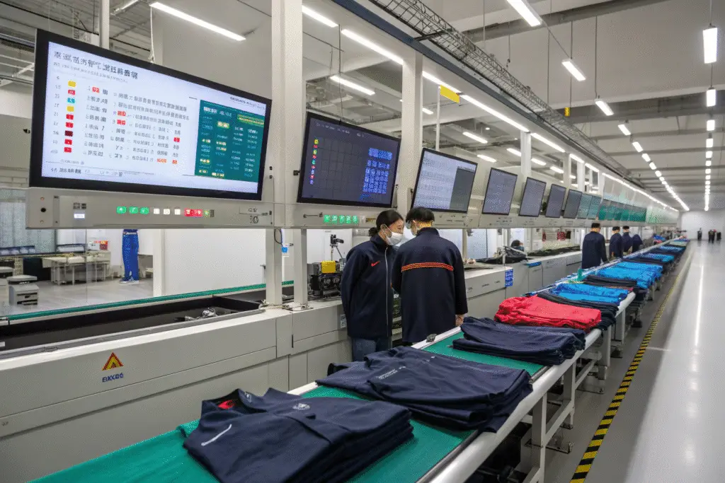 Real-time systems track production. They alert us to problems instantly. This stopped a delay for a U.S. brand's activewear. IoT sensors monitor every line. Data helps us fix things quick. You avoid costly mistakes. Our approach keeps quality high.