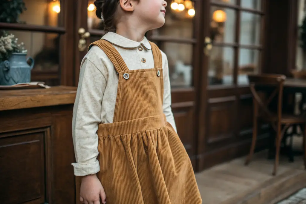 Europe has a long-standing sartorial tradition that values heritage, craftsmanship, and "slow fashion" over disposable trends. Corduroy, or "cord" as it's often called, embodies this ethos. It is a fabric with history, known for its durability, warmth, and distinctive texture that improves with age. The corduroy jumper—a pinafore-style dress—is a classic children's silhouette that evokes nostalgia, practicality, and a timeless, wholesome aesthetic that resonates deeply with European parenting styles.