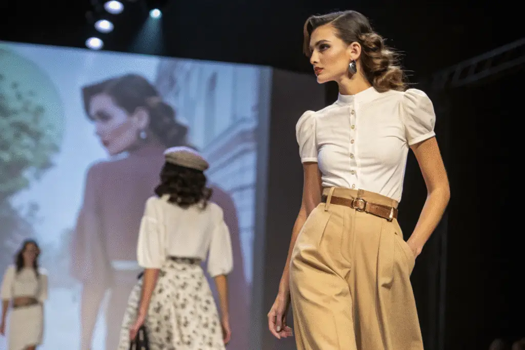 | 1940s | High-waisted, wide-leg trousers for utility | Updated with sustainable stretch fabrics |