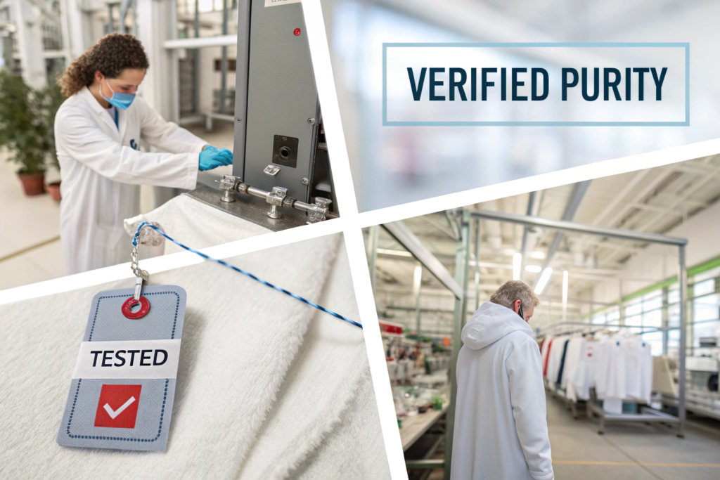 We provide our luxury partners with more than a certificate. We provide a full-package production dossier that includes mill documentation with certificates and test reports for every input material, production audit logs showing segregated production runs, and batch-specific traceability linking finished garment serial numbers to material lots. This dossier becomes part of the brand's internal lore and can be selectively shared to validate the story.