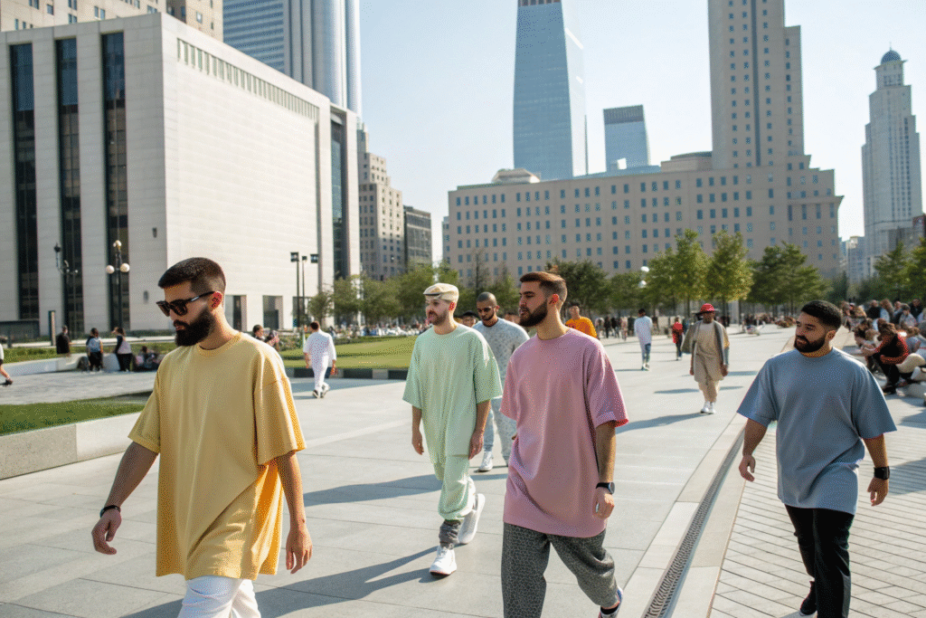 Streetwear is central to this trend. For decades, streetwear has celebrated loose, layered looks. This style comes from skate and hip-hop cultures where movement and self-expression are key. High-profile collaborations and celebrity endorsements have pushed this style into the mainstream. When a famous musician or influencer wears an oversized graphic tee, it sells out. This cultural power makes the oversized t-shirt a valuable product for brands wanting to tap into the influential streetwear market.