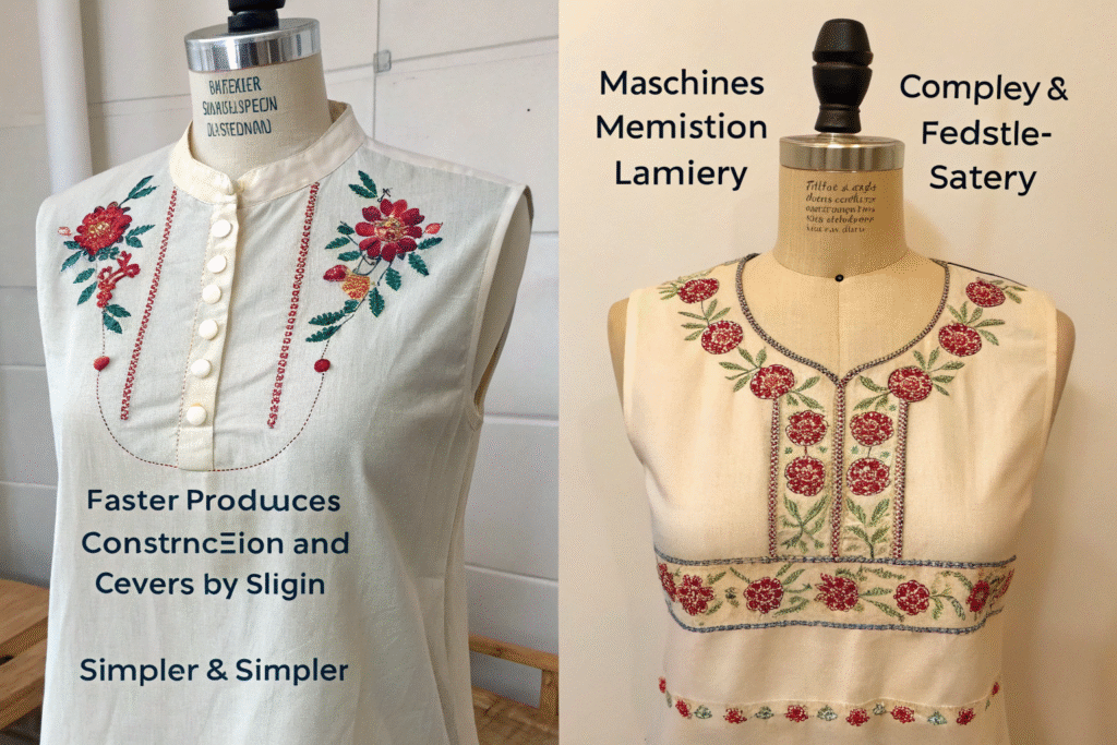 - A dress shirt with a collar, cuffs, and placket requires multiple precise steps and more time.