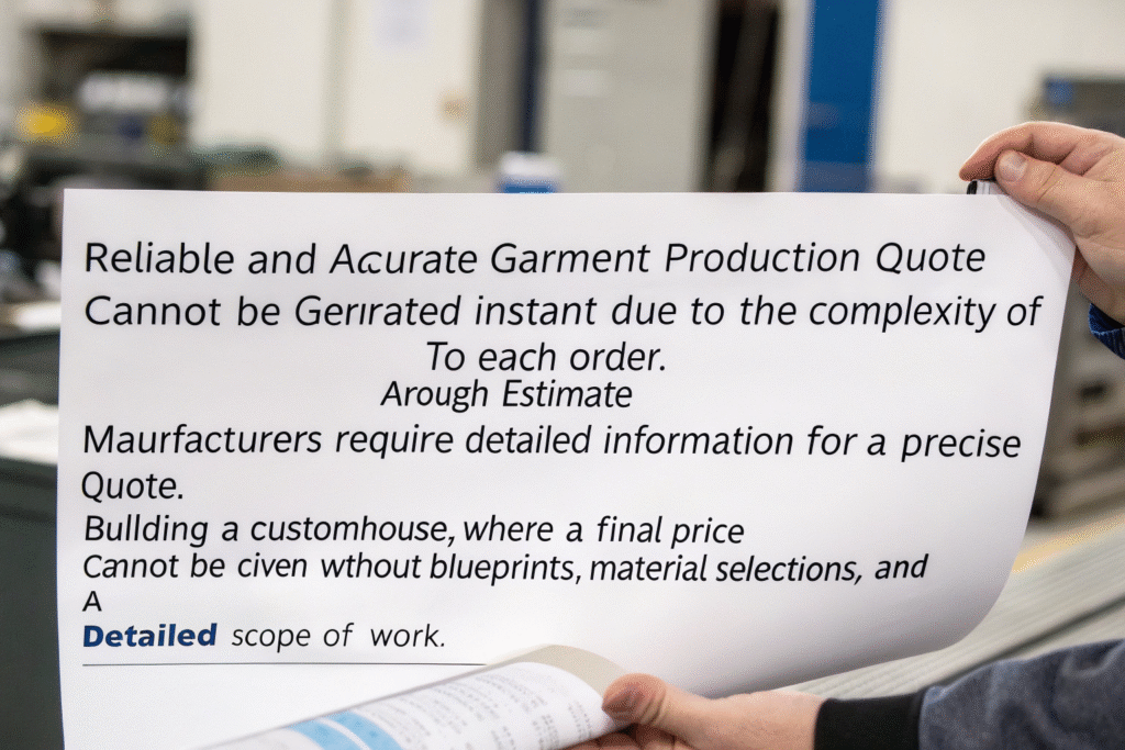 The truth is, a reliable and accurate garment production quote cannot be generated instantly because it is a complex calculation based on a multitude of unique variables specific to your order. An instant price, often seen on some B2C platforms, is usually a rough estimate at best. For a precise quote that reflects true cost and avoids surprise charges later, manufacturers need detailed information. Think of it like building a custom house; a builder can't give you a final price without blueprints, material selections, and a detailed scope of work. The same principle applies to custom clothing manufacturing.