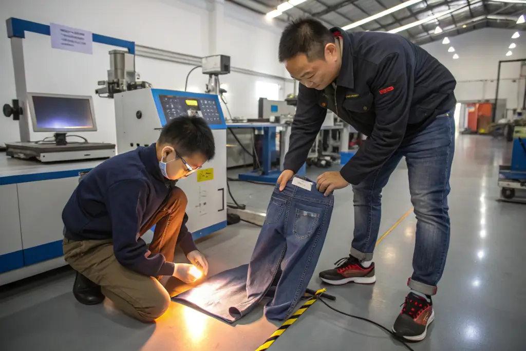 We use the Martindale Test to check abrasion resistance. We rub the fabric in a figure-eight pattern against a standard abrasive until it wears through. For kids' pants, we want a high rub count, especially for the knees. We also perform Seam Slippage Tests. We pull on a seam to see if the threads pull out of the fabric. This is crucial for armholes and seat seams where kids put the most stress. For a recent order of cargo pants for a client in Seattle, we found the seam at the back pocket was pulling during our test. The fabric was strong, but the thread tension was slightly off. We adjusted the machines and re-stitched the sample. The final product was bulletproof.