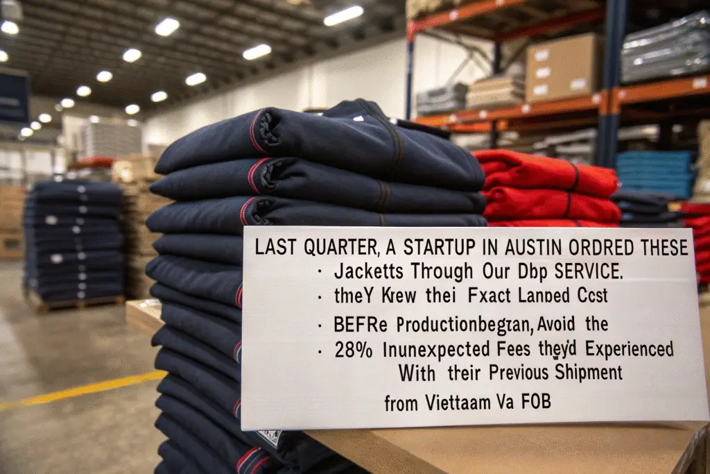 Last quarter, a startup in Austin ordered 300 custom jackets through our DDP service. They knew their exact landed cost before production began, allowing them to accurately calculate margins and avoid the 28% in unexpected fees they'd experienced with their previous FOB shipment from Vietnam.