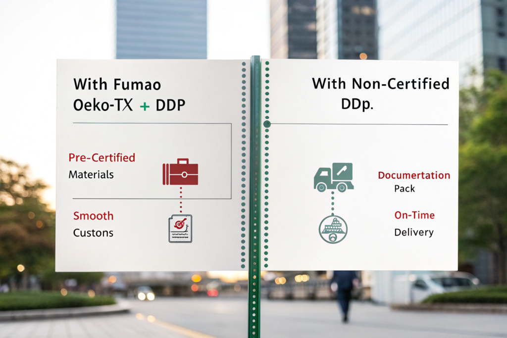Fumao’s OEKO-TEX certification matters for DDP shipments to North America because it transforms a quality standard into a supply chain reliability tool. In the high-stakes, supplier-liable DDP model, it provides the documented evidence needed to navigate the increasingly strict chemical compliance landscape of U.S. and Canadian imports. It protects the supplier from catastrophic delays and costs, and in doing so, it protects the brand’s timeline, budget, and customer relationships.