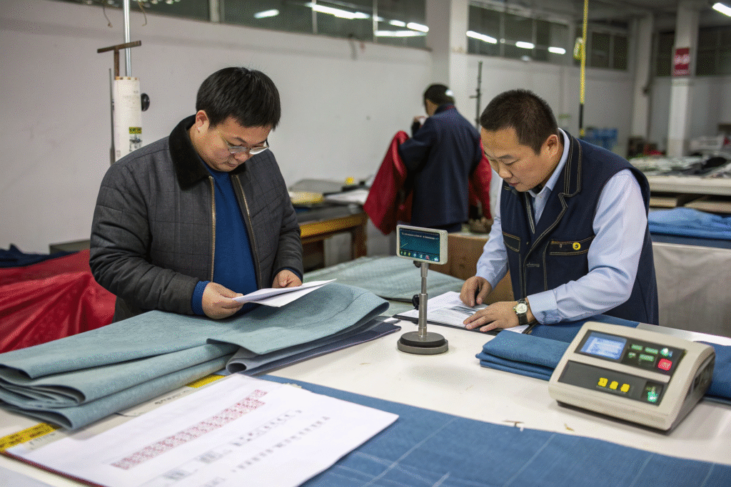 Order swatches. Measure GSM. Wear test. Adjust before bulk.
