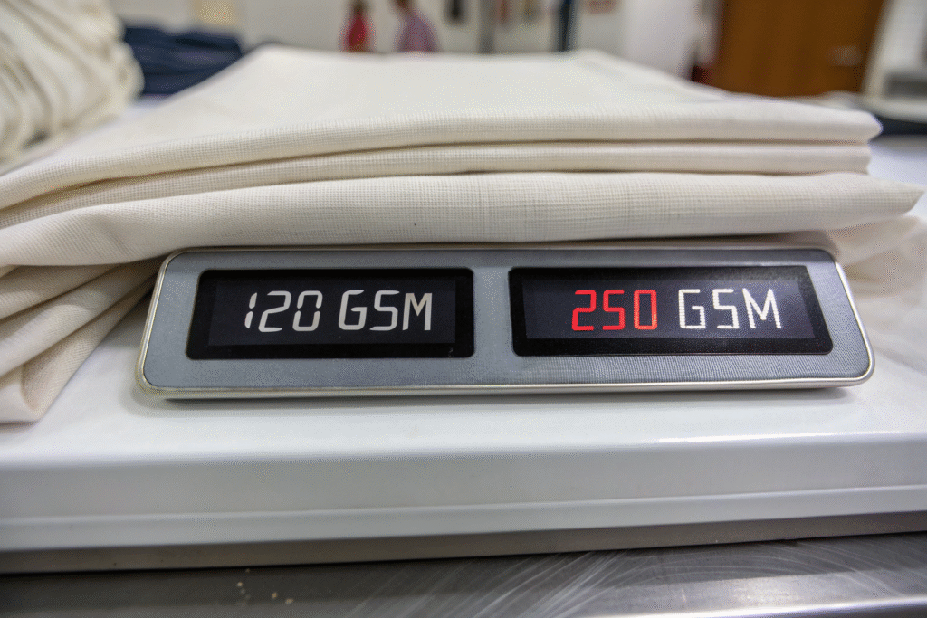 GSM indicates fabric weight. Low GSM feels light. High GSM feels sturdy.
