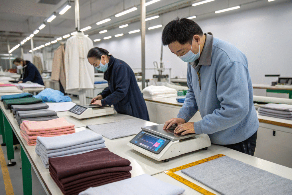 Order swatches. Measure GSM. Wear test. Adjust before bulk.