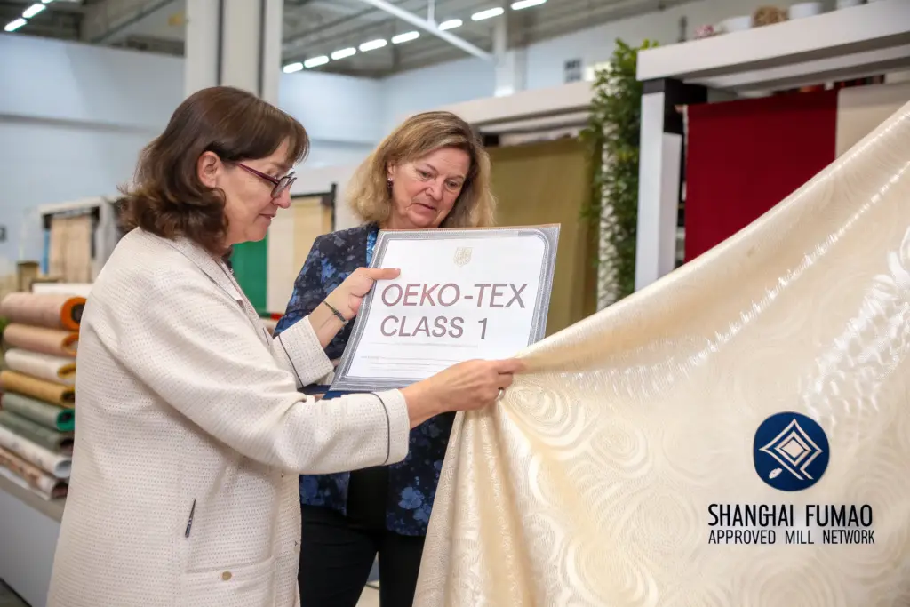 OEKO-TEX® Class 1 certification mitigates this risk by enforcing the world's most stringent limits for over 100 harmful substances specifically for these materials. For instance, the standard sets strict thresholds for phthalates (often used in plastics and prints) and formaldehyde (used in anti-wrinkle and permanent-press finishes), which are particularly relevant for treated formal fabrics. When you source from Shanghai Fumao, our approved mill network provides pre-certified luxury fabrics that meet these limits without sacrificing aesthetic quality, ensuring the opulent hand-feel and visual appeal are achieved safely.