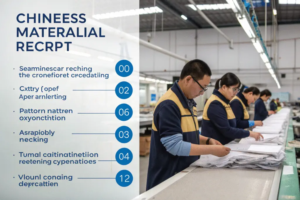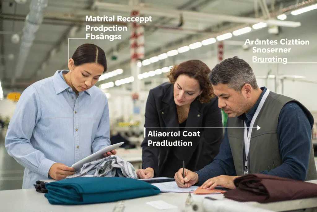 Material receipt synchronizes all production elements, creating a reliable starting point that coordinates pattern making, cutting, sewing, and finishing operations.