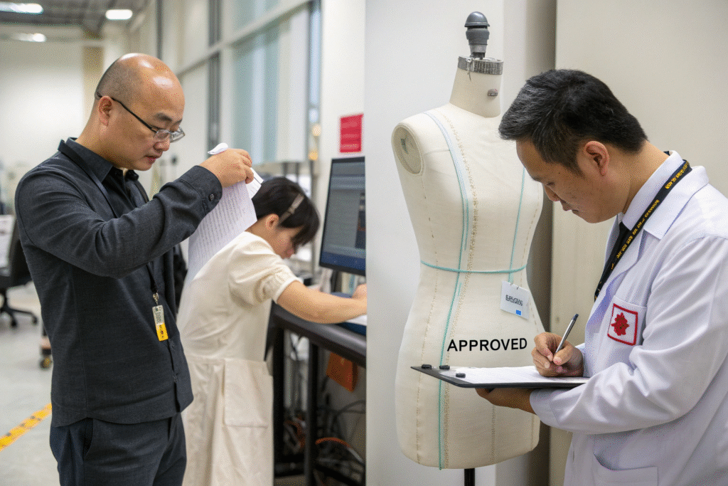 • Final Sample Stage: Every detail is audited against the regulatory checklist: are buttonholes trimmed? Are bar tacks secure? Are any loose threads present? This final sample becomes the physical benchmark for bulk production quality.