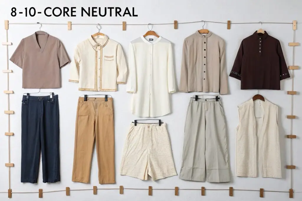 | 10 versatile pieces | 25–40 outfits |