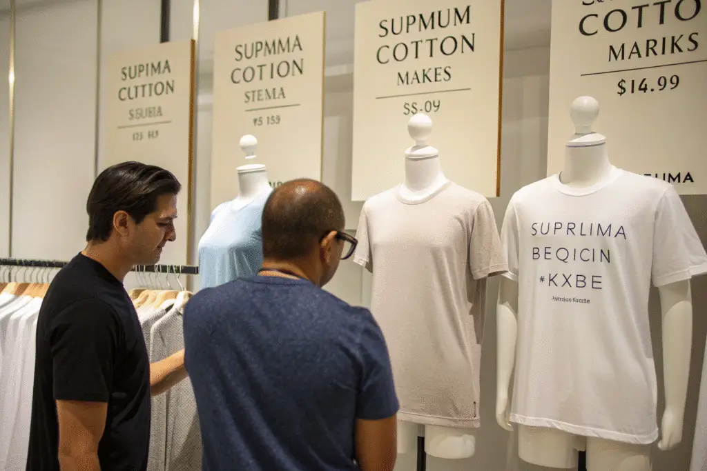Long staple. Boston polos Supima. Soft hand. Priced $45 not $28. Sold out. Margin 62%. Read Supima benefits. Feel luxury.