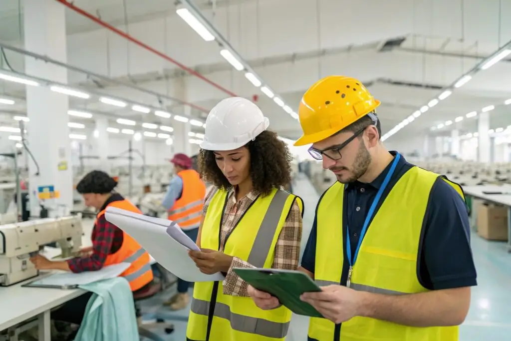 Third-party auditor evaluating garment factory operations